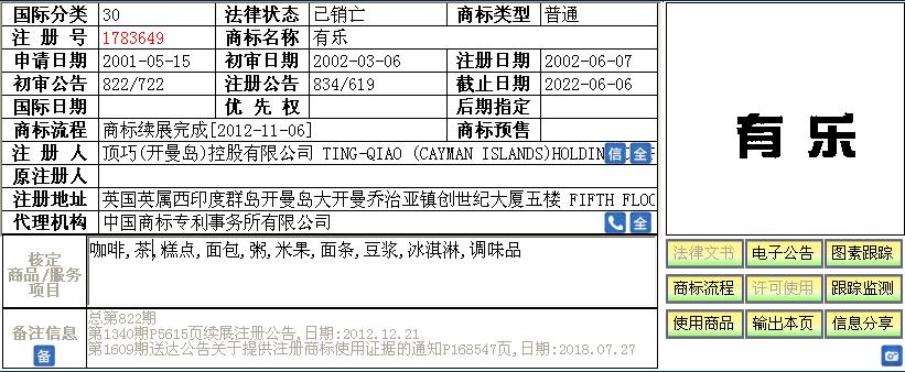 2017年12月15日商标局引证了顶巧(开曼岛)控股有限公司的“有乐”商标而将申请人的“有乐Yolexury” 商标予以部分驳回,驳回项目包含“以谷物为主的零食小吃,调味品,茶,甜食,果汁刨冰”商品项目。南京中脉科技发展有限公司在我所的分析及建议下最终决定在提起驳回复审程序的同时对引证商标提起撤三程序继续争取该商标。我所在接受南京中脉科技发展有限公司的委托后,于2018年01月22日向国家知识产权局商标评审委员会提起驳回复审程序,同期对引证商标向国家知识产权局提出撤三程序。