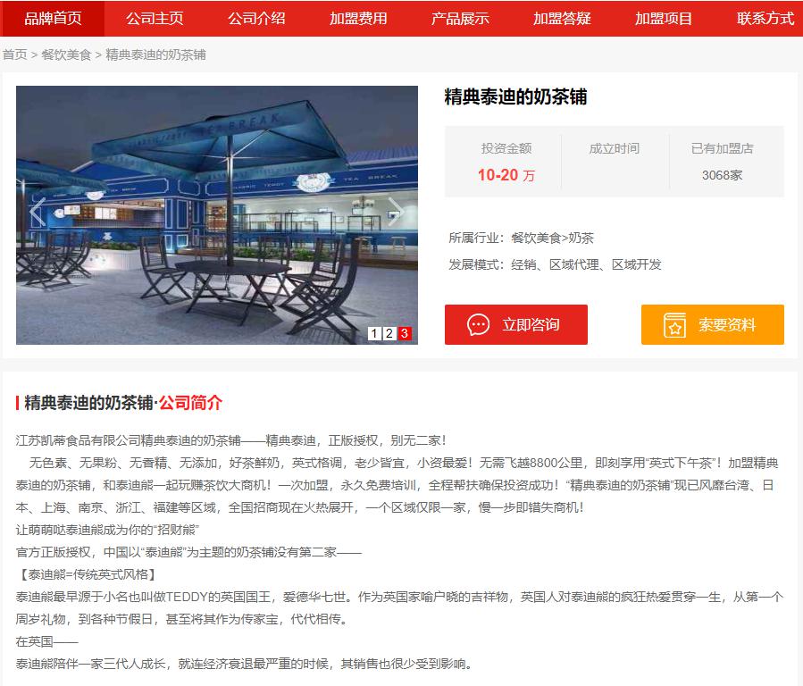 申请人--江苏凯蒂食品有限公司成立于2014年12月2日,是一家具备国际视野,互联网思维的新兴餐饮公司。主要经营“食品销售、餐饮服务等”坐落于南京市雨花台区,注册资本500万。随着企业餐饮的迅速发展,申请人已成立了多家分公司。此外,申请人还开创了“精典泰迪的奶茶铺”品牌,并逐渐发展成为奶茶行业中的知名品牌,一直在该行业中占据着独一无二的地位,致力于为消费者提供奶茶等产品,因其产品种类多,质量好,价格低廉,一直都是消费者的心头爱,多年来产品一直不断推陈出新,改变了行业原有的一成不变的形态。